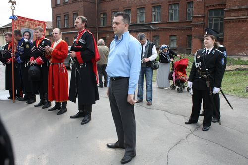 Среди гостей можно было видеть Николая Игоревича Сикорского, сына знаменитого русского конструктора и крестника известного государственного деятеля товарища обер-прокурора Святейшего Синода Николая Давидовича Жевахова, а также бывшего главнокомандующего ВВС России, генерала армии, Героя Российской Федерации Петра Степановича Дейнекина. Рядом с этими прославленными людьми стояли участники молодежного военно-патриотического клуба «Верность», который уже несколько лет существует при храме Воскресения Христова.