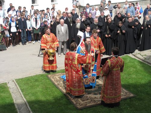 Под колокольный звон к месту освящения памятника, сопровождаемый наместником архимандритом Тихоном (Затекиным) и всей монастырской братией, торжественно прошествовал Высокопреосвященный Георгий митрополит Нижегородский и Арзамасский. Высокопреосвященный Владыка Георгий и все присутствующие трижды пропели у памятника Государю Императору Александру II Освободителю «Христос Воскресе». Его Высокопреосвященство митрополит Георгий прочитал молитву и окропил памятник святой водой.