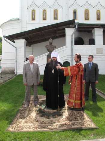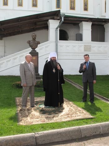 В своем слове Владыка Георгий сказал: «Многие из царей полагали душу свою за нашу землю, за народ. Сегодня мы возвращаем историческую память: надо помнить и знать своих государей, тех людей, которые заботились о нашей земле, которые передали нам огромное Отечество. На Руси всегда чтили государей. Мы должны в своей душе, в исторической памяти сохранять дух благодарности тем людям, на которых выпала забота об Отечестве нашем». Митрополит Георгий поблагодарил всех попечителей, кто заботился о создании этого памятника.