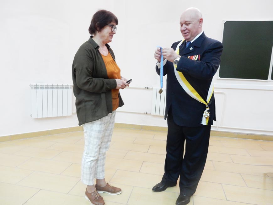 Перед началом работы круглого стола председатель регионального отделения ИППО в Красноярском крае Сергей Гонюхов, выполняя решение Совета ИППО от 19 апреля 2018 года, вручил удостоверение и знак Общества новому члену – кандидату исторических наук Елене Шушкановой.