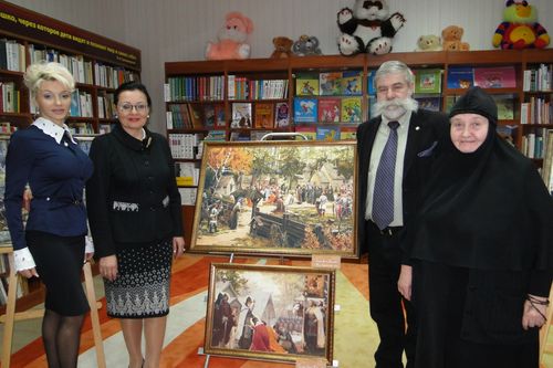 В открытии выставки приняли участие заместитель министра культуры и туризма Калужской области Бессонов В. А., президент кинофестиваля «Встреча» монахиня София (Ищенко), благочинный Калуги архимандрит Донат, руководитель Калужского отделения партии Духовного Преображения России, Устиненко А. Н. члены Калужского отделения ИППО Гороховатский В. Н. (председатель), Коновалова М. П. (директор библиотеки), сотрудники и читатели библиотеки.