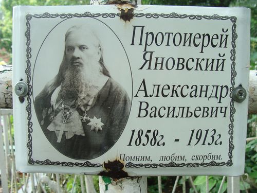 Из различных источников Александр Николаевич Панин установил, что протоиерей Александр Васильевич Яновский был талантливым администратором, педагогом и проповедником, за что был удостоен многих высоких наград. Он родился в семье священника Волынской губернии (юго-западная губерния Российской Империи, с 1804 года губернский центр город Житомир). В книге В. А. Михальченко «Духовенство Одессы. 1794-1925» написано, что он родился в 1849 году, а на табличке, укрепленной на кресте отца Александра, указаны годы (1858–1913 гг.).