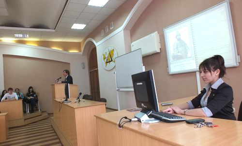 Илья Геннадиевич рассказал собравшимся преподавателям, аспирантам и студентам ЮРГУЭС о преодолении Смуты и истории воцарения новой династии, о наиболее ярких представителях царствующего более трёхсот лет в России Дома Романовых. На слайдах презентации взорам собравшихся предстали русские цари, императоры и императрицы всероссийские, создавшие за три столетия великое и сильное государство. В стенах вуза, наверное, впервые после драмы всероссийского обвала 1917 года звучал русский гимн «Боже, Царя храни».