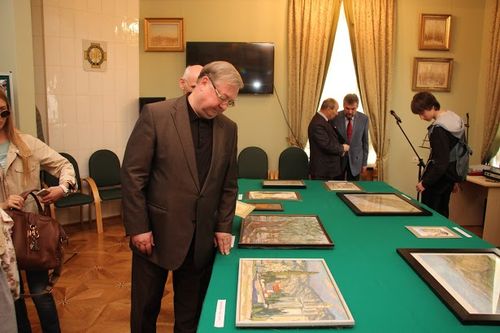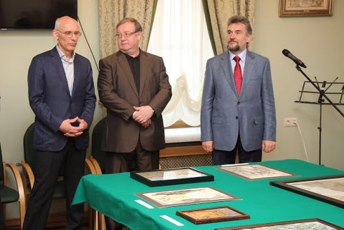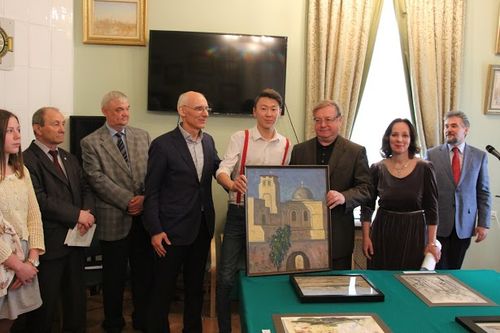На память С.В. Степашину была вручена картина, написанная на Святой Земле одним из лучших студентов МГАХИ им.Сурикова Семёном Никифоровым. Сергей Вадимович подарил молодому художнику книгу заместителя Председателя ИППО, доктора исторических наук Н.Н. Лисового "Святая Земля: история и наследие", к которой он написал предисловие, со своей памятной надписью.