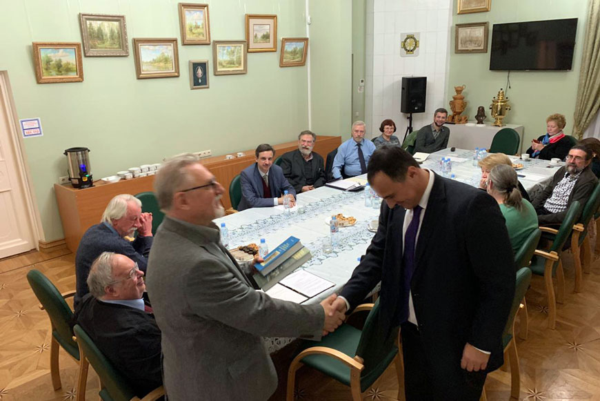 По третьему вопросу выступил заместитель руководителя Научной секции ИППО С. Ю. Житенёв, который представил собравшимся план работы Научной секции ИППО на 2020 год. Он обратил внимание на то, что в следующем году Общество будет вспоминать 115-летие трагической гибели Великого князя Сергия Александровича. В связи с этим он предложил провести первые всероссийские Сергиевские чтения в Москве и в тех регионах, где есть отделения ИППО. Далее Сергей Житенёв рассказал о юбилеях выдающихся и известных деятелях Общества 2020 года: