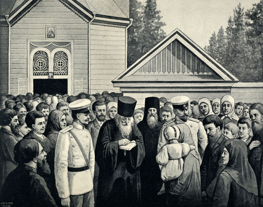 Именно он принял исповедь в 1903 году у святых царственных страстотерпцев и родственников Царя, прибывших на прославление святого старца.