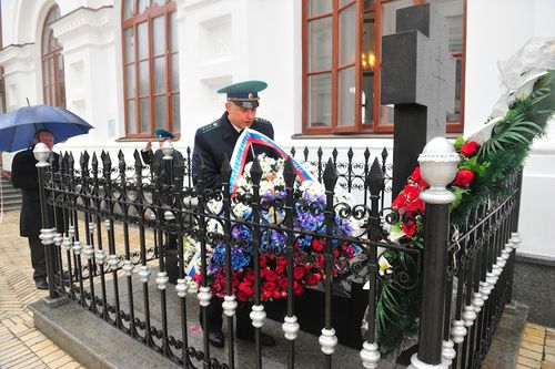 Богослужение совершил епископ Броварской Феодосий. За панихидой молились сотрудники посольства Российской Федерации в Украине во главе с советником-посланником Андреем Воробьевым. Память выдающегося российского государственного деятеля и дипломата почтили представители Россотрудничества, организаций российских соотечественников, Украинской молодежной палаты и молодежных организаций стран СНГ.