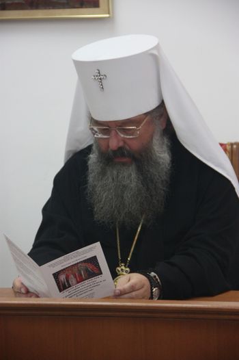 После молебна на начало благого дела правящий архиерей Екатеринбургской митрополии обратился к участникам и гостям с приветственным словом и благословил работу конференции.