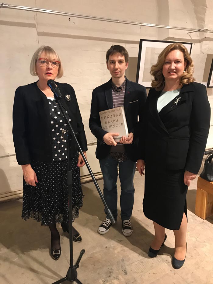 Открыла церемонию директор Музея архитектуры имени А. В. Щусева Елизавета Лихачёва. Она поздравила авторов книги с выходом в свет уникального труда и выразила благодарность Министерству культуры Российской Федерации, Императорскому Православному Палестинскому Обществу, которые оказали большую помощь в подготовке и выставки, и книги, посвящённых наследию выдающегося архитектора Алексея Щусева в Бари.