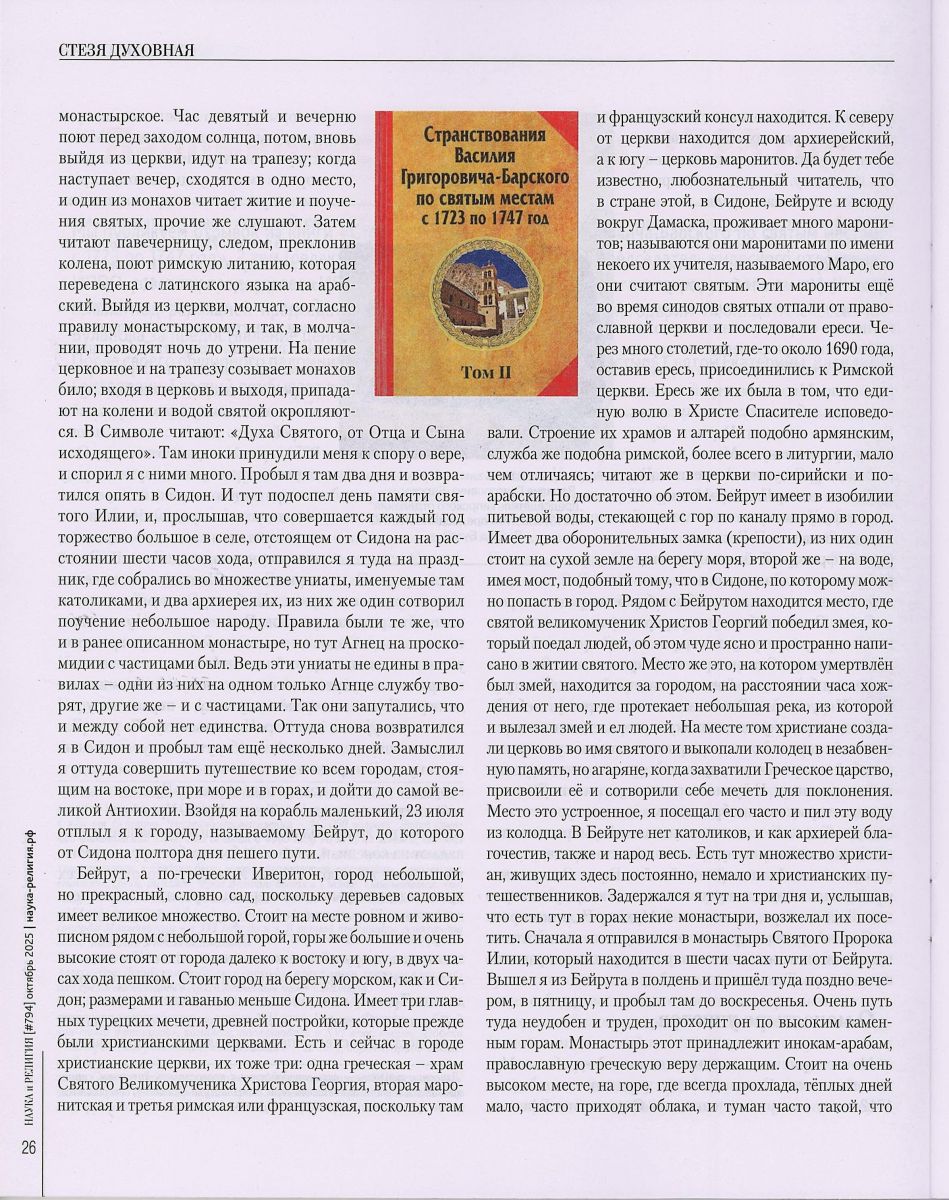 Во втором томе произведения повествуется о прибытии Василия Григоровича-Барского в Ливан.