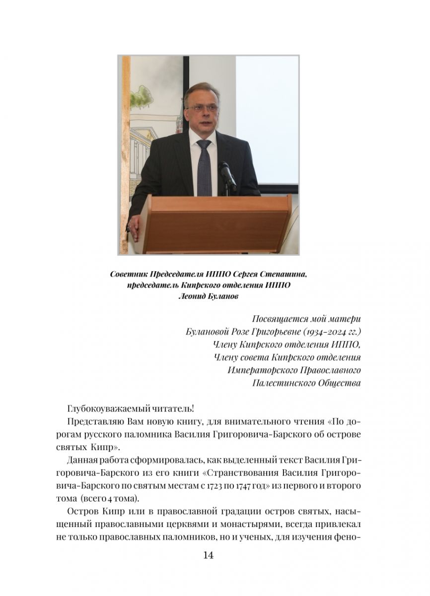 Вступительное слово или предисловие редактора и издателя, руководителя Кипрского отделения ИППО, профессора Леонида Буланова из книги «По дорогам русского паломника Василия Григоровича-Барского. Об острове святых Кипр»