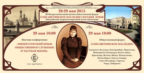 28-29 мая 2015 г. по благословению Святейшего Патриарха Московского и всея Руси Кирилла Фонд содействия возрождению традиций милосердия и благотворительности «Елисаветинско-Сергиевское просветительское общество» проводит в Крыму III Межрегиональный научно-общественный форум «Елизаветинское наследие сегодня. Крым». Форум организован в рамках программы фонда ЕСПО и Правительства Москвы «На службе Москве и Отчеству. Великий князь Сергий Александрович и Великая княгиня Елизавета Федоровна».