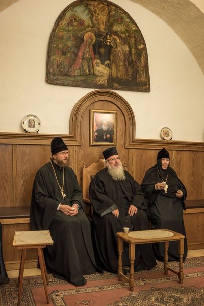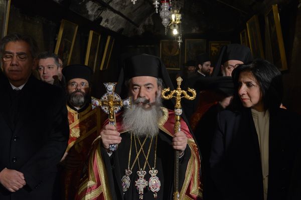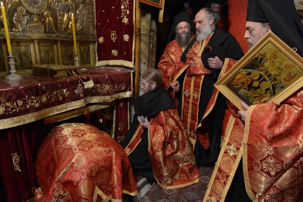 Иерусалимский Патриарх в сопровождении архиереев кортежем отправляется на автомобилях от Яффских ворот Старого Города, по дороге заезжая в расположенный на пути монастырь св. Илии Пророка и встречаясь с представителями палестинской администрации и общественности.