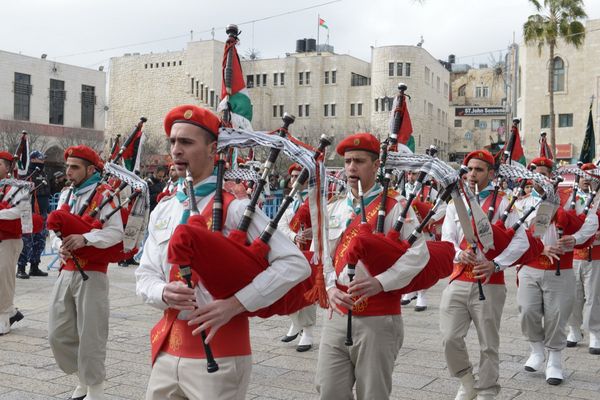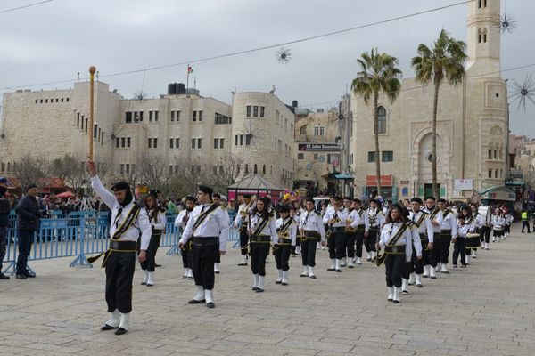 На площади Яслей напротив Храма Рождества Христова в Вифлееме прошло праздничное шествие и встреча Патриарха, символизирующая встречу волхвов с Богомладенцем Христом. Как всегда в этот день, друг за другом прошли отряды скаутов из православных арабских школ Вифлеема, «вооруженные» различными музыкальными инструментами. Из храма вышел сонм священнослужителей, торжественно встретивших Патриарха Феофила, среди которых были и представители Русской Духовной Миссии в Иерусалиме ‒ игумен Феофан и игумен Леонтий. Затем процессия отправилась в базилику Рождества Христова, где начались службы Навечерия. В храме присутствовала мэр Вифлеема Вера Бабун, член ИППО.