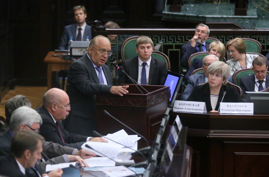 С основным докладом, посвященном 70-летию окончания Второй мировой войны и состоянию современной системы международной безопасности, выступил ректор МГИМО-университета МИД России, сопредседатель Российского исторического общества А.В. Торкунов.