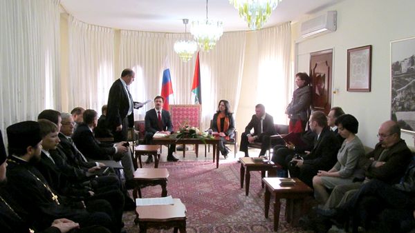 В ходе церемонии выступил Дауд Матар, который зачитал приветствие от Председателя Императорского Православного Палестинского Общества Сергея Степашина.