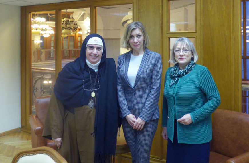 Официальный представитель МИД Мария Захарова провела встречу с гостями ИППО - матушкой Агнесс Мариам ас-Салиб и независимой журналисткой Ванессой Билей