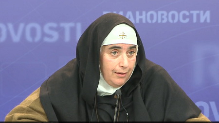 19 декабря она выступила на пресс-конференции «Гуманитарная катастрофа в Сирии: положение христиан» в МИА «Россия сегодня», где рассказала о положении мирного населения в Сирии, об угрозах со стороны террористов и о необходимости международной солидарности ради достижения мира в Ближневосточном регионе. Большие надежды монахиня возлагает на Россию.