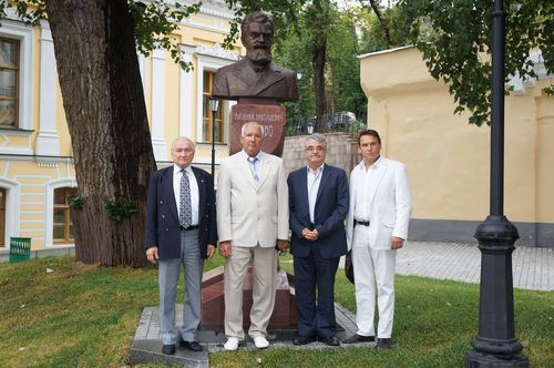 Жорж Мушавар осмотрел Центр Императорского Православного Палестинского Общества, где идет работа над созданием музея истории ИППО, и сфотографировался у памятника инициатору учреждения Палестинского Общества В. Н. Хитрово.