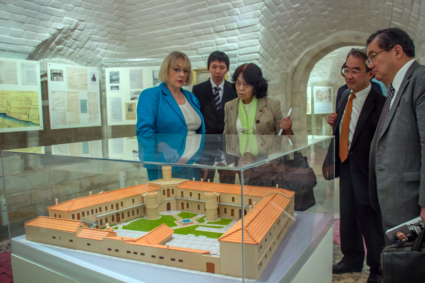 По окончании беседы Елена Агапова пригласила японских гостей осмотреть Музей истории ИППО. Парламентарии с большим интересом осмотрели экспозицию Музея ИППО и были весьма впечатлены историей старейшего в России Общества – русского присутствия и современной деятельностью в Святой Земле. Гости оставили запись в книге Почётных посетителей Музея.
