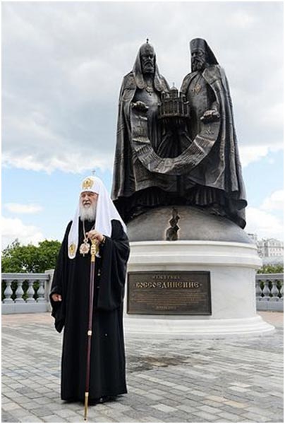 Святейший Патриарх Кирилл освятил у Храма Христа Спасителя памятник, посвящённый 10-летию восстановления единства Русской Православной Церкви