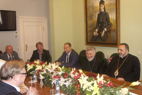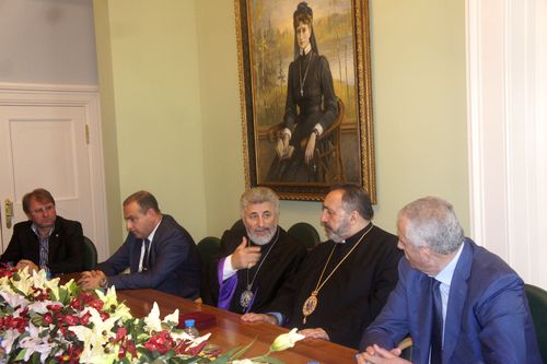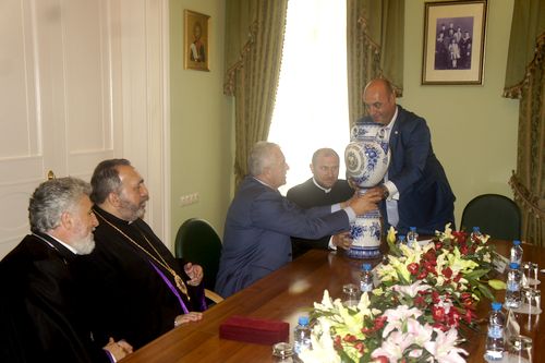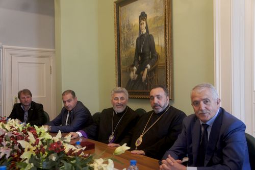 Владыку сопровождали патриарший экзарх в России, глава Ново-Нахичеванской и Российской епархии Армянской Апостольской Церкви епископ Ерзас Нерсесян и Чрезвычайный и Полномочный посол Армении в России О.Е. Есаян.