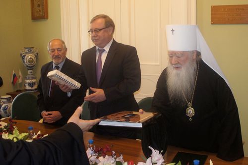 На память о встрече патриарх подарил Сергею Степашину и митрополиту Ювеналию книги. Библия, подаренная главе ИППО, выполнена в подарочном варианте, ее обложка инкрустирована изображением креста.
