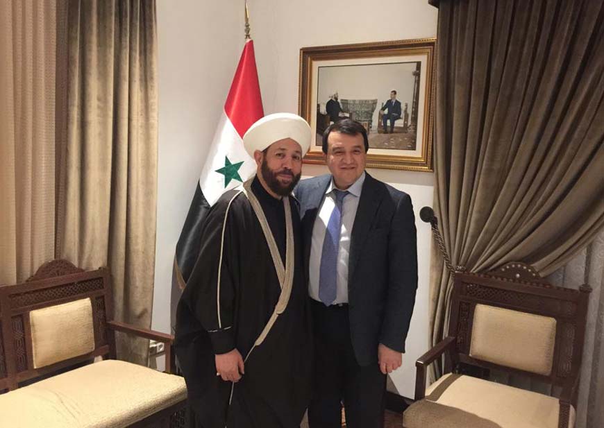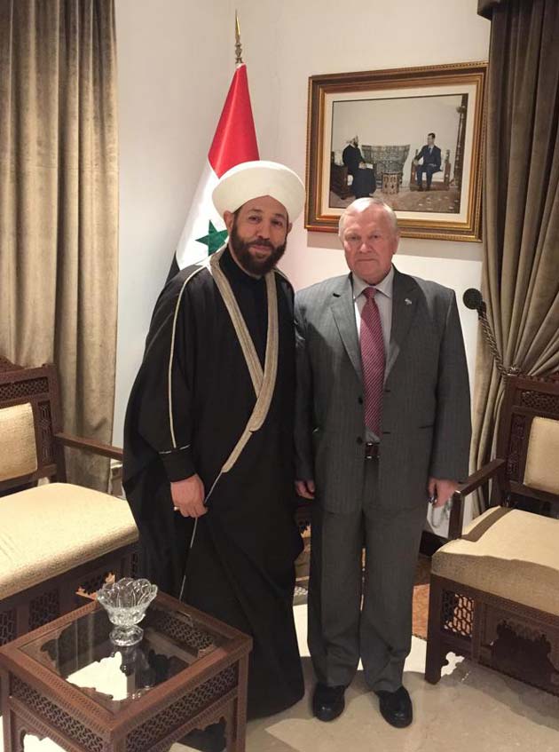 Очень тепло прошла встреча Рабочей группы с верховным муфтием Сирии Ахмадом Бадреддином Аль Хассун. Муфтий просил передать Председателю ИППО Сергею Вадимовичу Степашину его просьбу о встрече в Москве, он планирует также посещение Государственной Думы, ОВЦС РПЦ и выступление с проповедью об опасности международного терроризма в центральной мечети города Москвы.