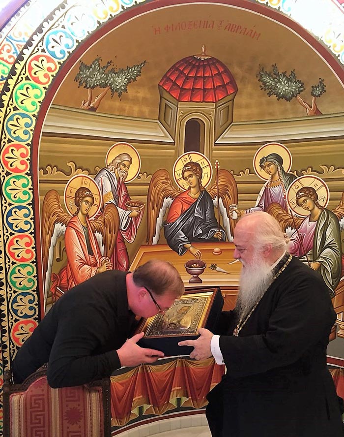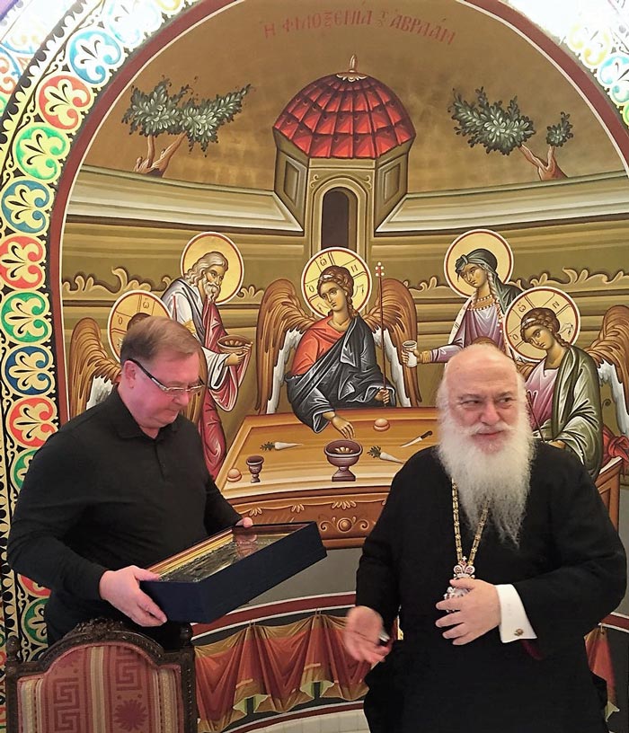 В свою очередь владыка Пантелеимон передал в дар Председателю ИППО Сергею Степашину икону Православного воина Феодора Ушакова, память которого почитается Русской Православной Церковью 15 октября.