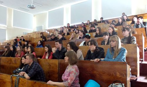 В большой лекционной аудитории собралось более 70 студентов, магистрантов, преподавателей вуза. Пресс-секретарь епархии рассказал собравшимся об истории и значении праздника Пасхи, евангельских событиях Страстной седмицы и Воскресении Христовом, о традициях православных христиан Ближнего Востока и России. Студенческая аудитория с интересом посмотрела видеосюжет о схождении Благодатного огня в Великую Субботу на Гробе Господнем в Иерусалиме, о том, как этот святой огонь доставляют в Россию и по всему миру, о праздновании Пасхи Христовой в Святой Земле и в Москве. Студентам были показаны настоящие церковные свечи из Иерусалима: пучок из 33 свеч, опалённых Благодатным огнём прошлогоднего пасхального торжества.