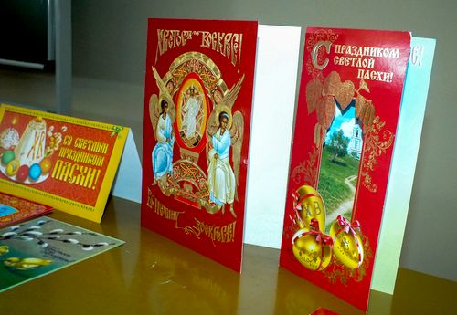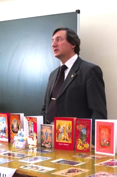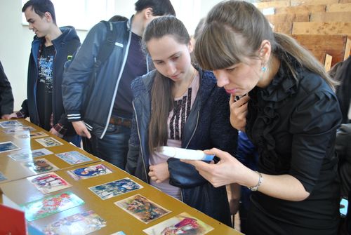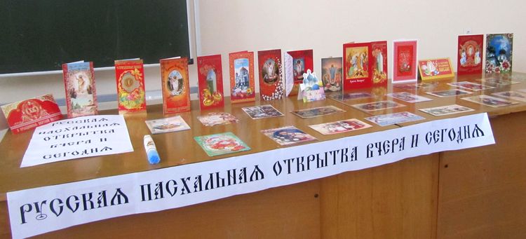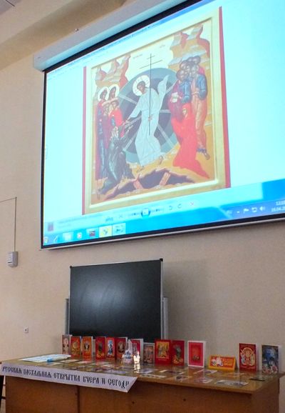 В завершении мероприятия ведущий ответил на вопросы аудитории и прокомментировал выставку пасхальной открытки, устроенную в аудитории. На выставке «Русская пасхальная открытка вчера и сегодня» были представлены отечественные поздравительные пасхальные открытки во временной подборке с конца XIX века до наших дней.