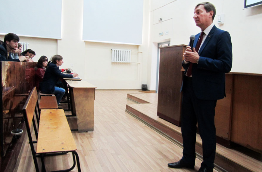 В своём обращении Илья Геннадиевич рассказал студентам-гуманитариям о деятельности студенческого научного кружка, о совместных с Шахтинской епархией и Императорским Православным Палестинским Обществом научно-просветительских проектах и призвал желающих принять в них посильное участие.
