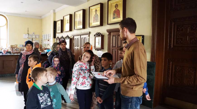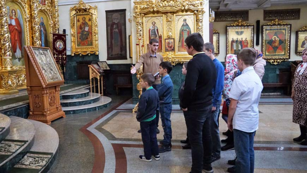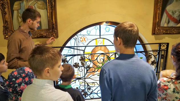 Множество картин, вдохновлённых житием Иисуса Христа, витражи, натуральные камни и позолота вызвали благоговение и неподдельный интерес маленьких гостей. В ходе экскурсии, пройдя по всем этажам и коридорам, дети познакомились с инфраструктурой храмового комплекса. Отрадно, что заметив изображение святого и медведя рядом с ним, ребята узнали преподобного Серафима Саровского. И подчеркнули, что по его доброте даже дикие звери ему подчинялись.